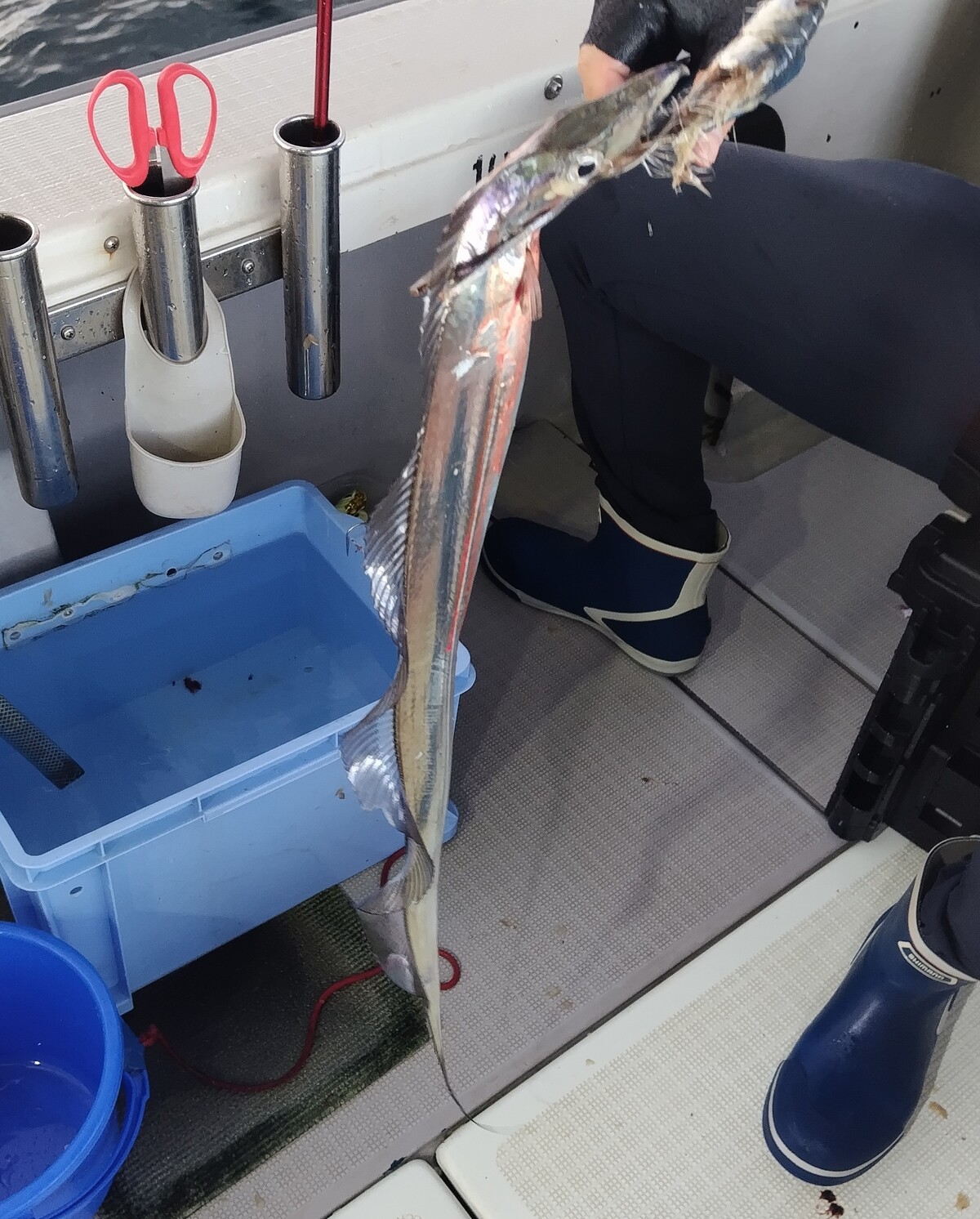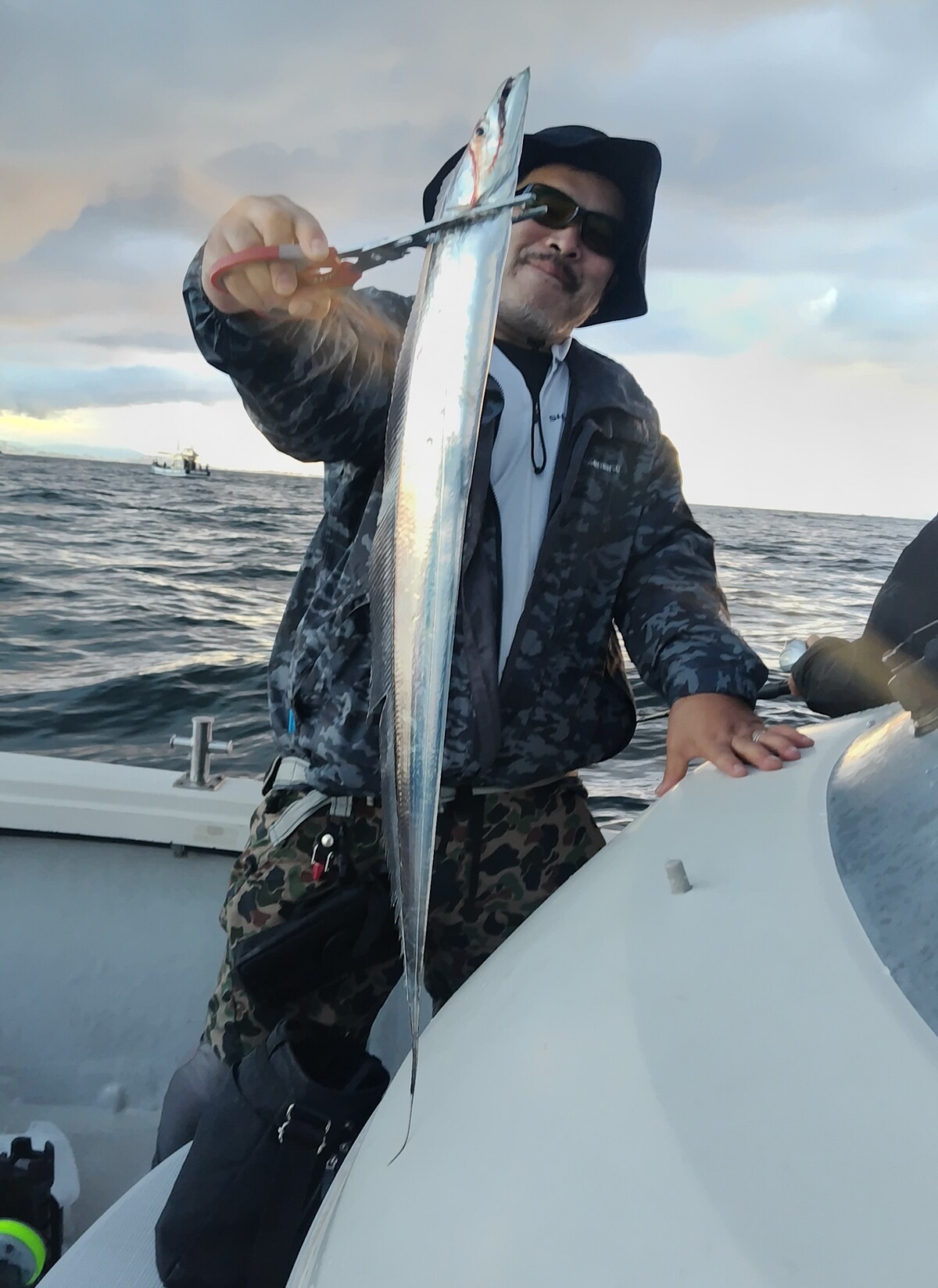 今日はタチウオ狙いで出船しました(^o^) 風の影響で神戸沖で頑張って頂き、朝一は良くアタリが出ましたが、中盤から苦戦(-_-;) 釣果悪くて申し訳ございませんでした(T_T) 本日は渋い状況での長時間、本当にお疲れ様でした。 |