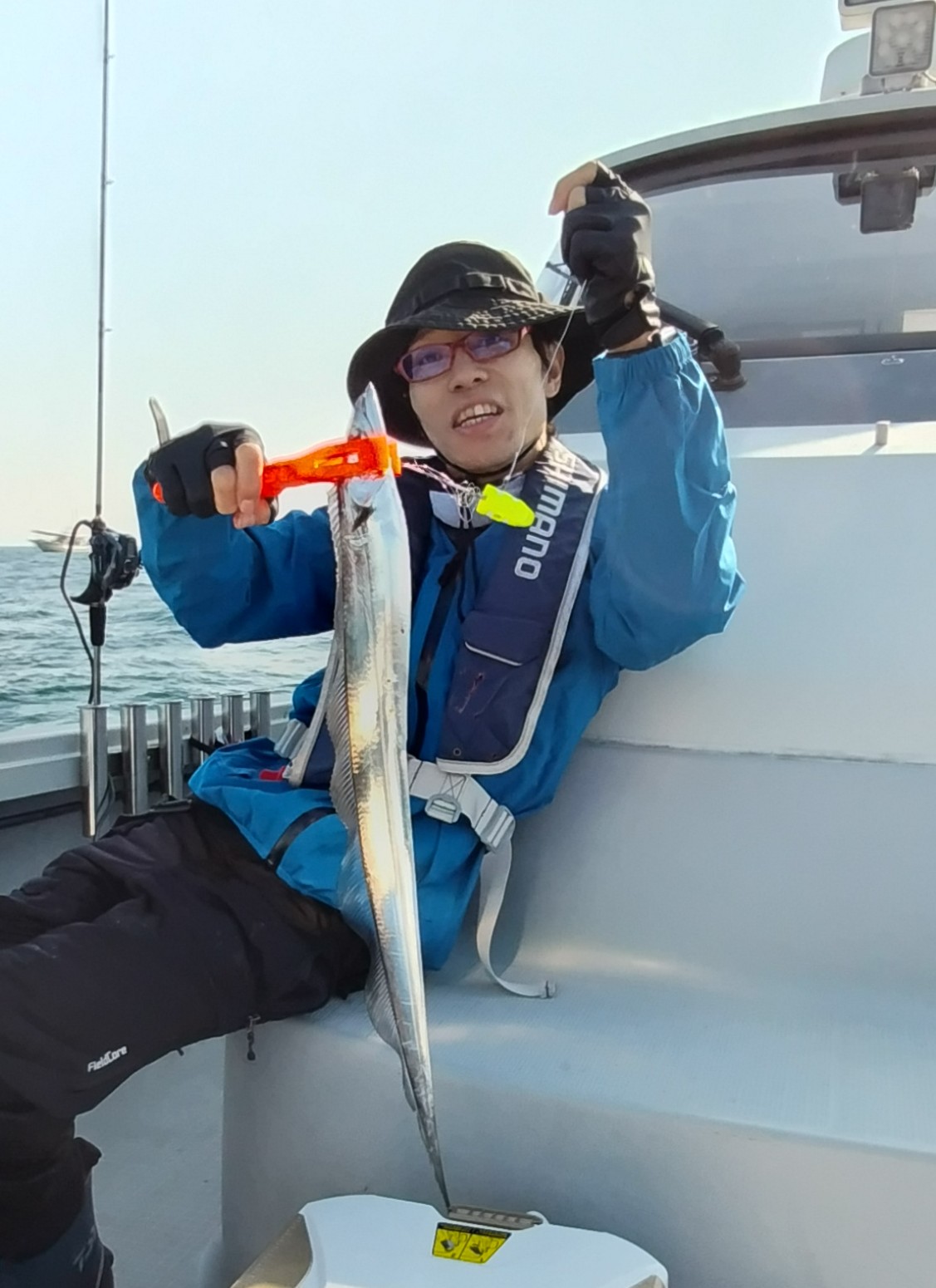 今日は仲良し親子のお二人様とタチウオ狙いで出船しました(^o^) 波風強くお二人様共初心者様と言う事も有り、なかなかアタリが分からず餌だけ喰われる事が多かったのですが、後半はバッチリタイミングも合って来ました! 自己目標は達成出来て良かったですね(^^) 次は数&サイズ狙いでチャレンジしてみて下さい! 本日は釣りづらい中での長時間、本当にお疲れ様でした。 |