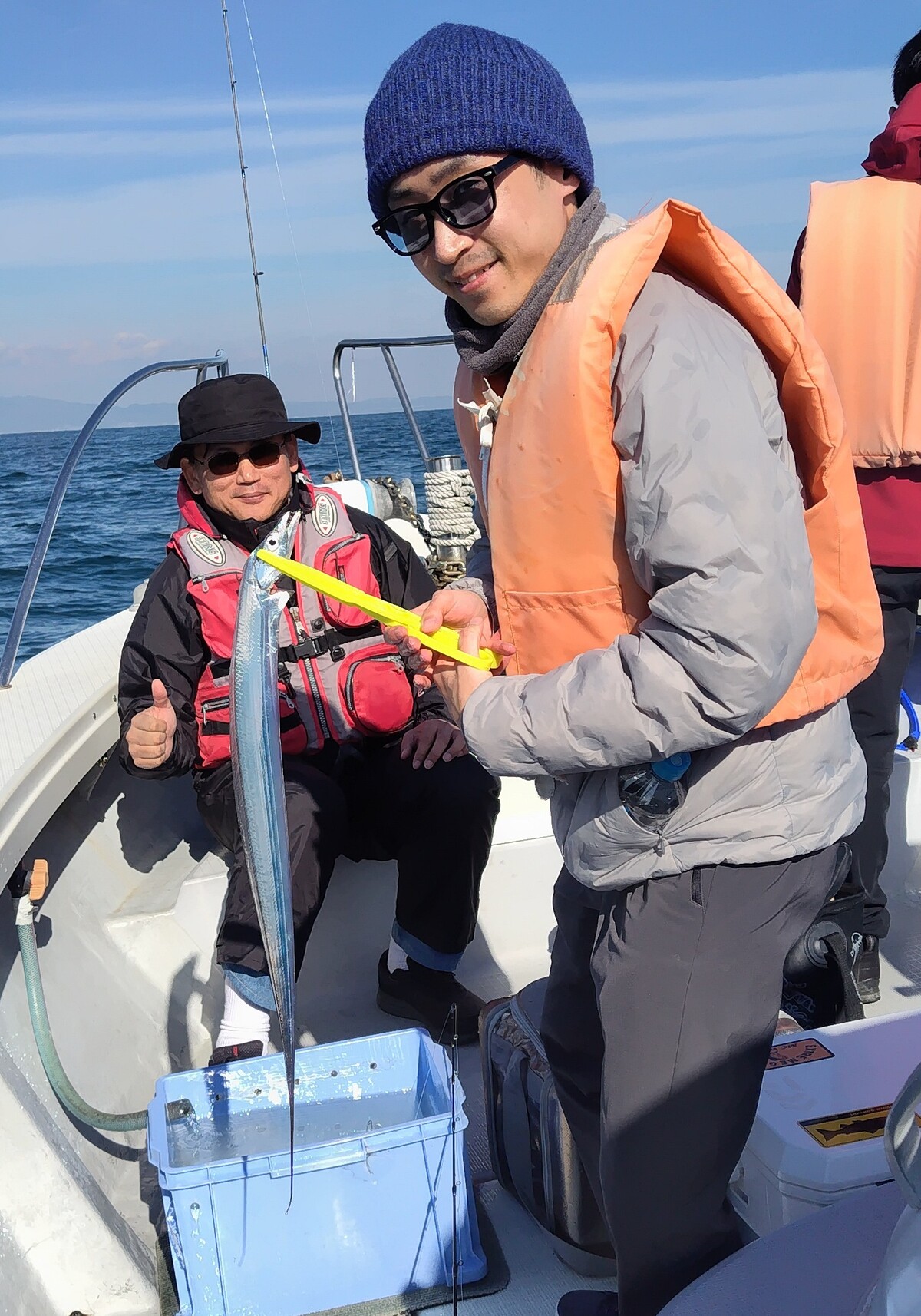 今日はタチウオ狙いで出船しました(^o^) ※2回目のチャーター、ありがとうございました。 ほとんどの方が初心者様でしたが、幹事様のフォローのお陰で全員安打! 幹事様、色々お手伝い頂き本当にありがとうございました。 m(_ _)m 朝一サワラキャッチに始まりマサバからオマツリ連発、女性(二名)のお客様もジグからテンヤに替えてから連発と、あっと言う間の楽しい一日でした。 段々と慣れて来た時に納竿となり残念でしたが、何とかお土産確保出来て良かったですね。 本日は長時間の釣行、本当にお疲れ様でした。 |