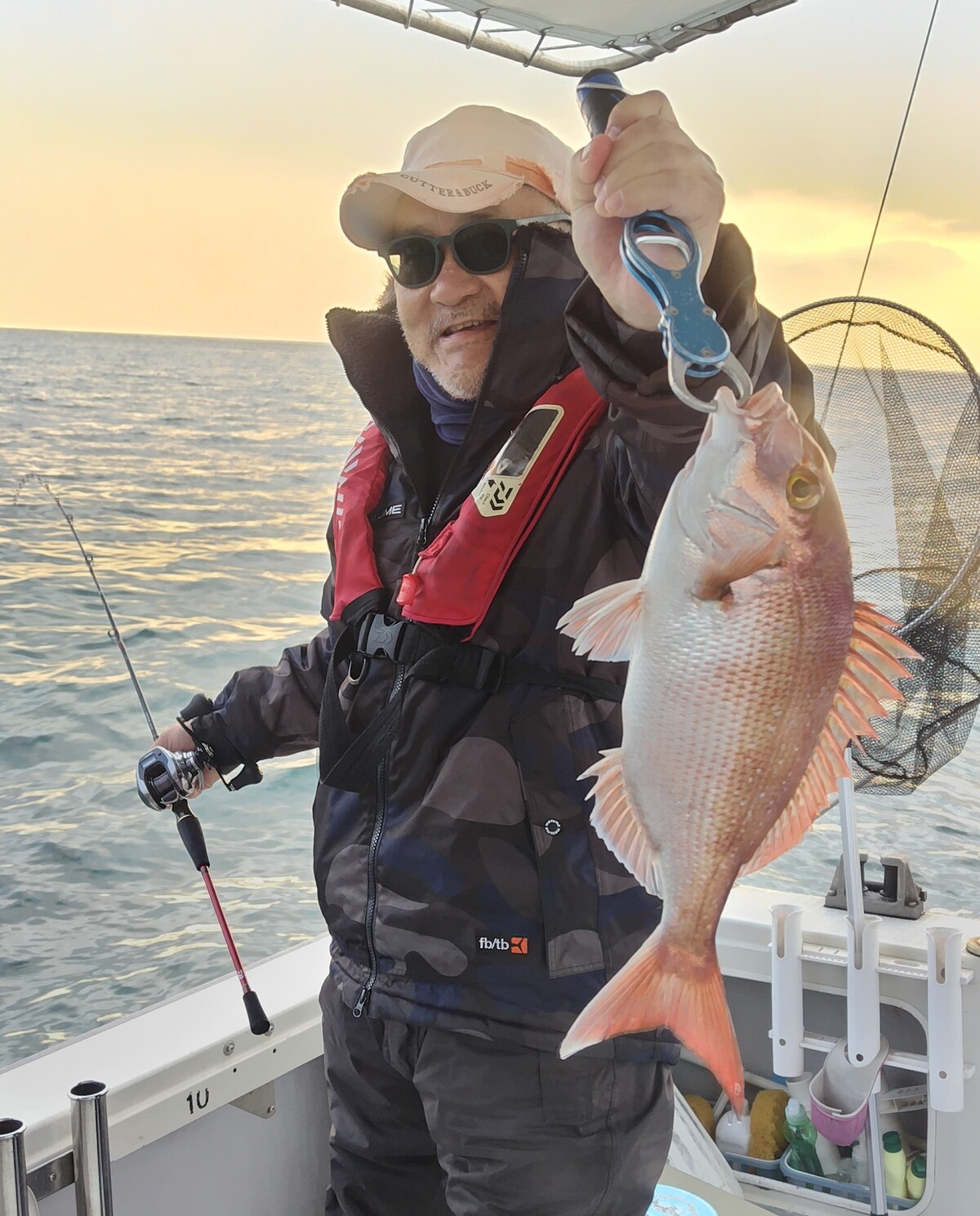 今日は通常便(^o^) 朝一からラストまでアタリ多く、トップ5枚の方が2名様、タイラバデビューの方が3連発! サイズはナナマル・67cm・63cm・58cmと大型連発! 色々な自己記録更新、おめでとうございました(^o^) ラストに1本延長しましたが上積み出来ず残念でした(T_T) 本日も長時間の釣行、本当にお疲れ様でした。 ※チャリコのリリース、ありがとうございました! |