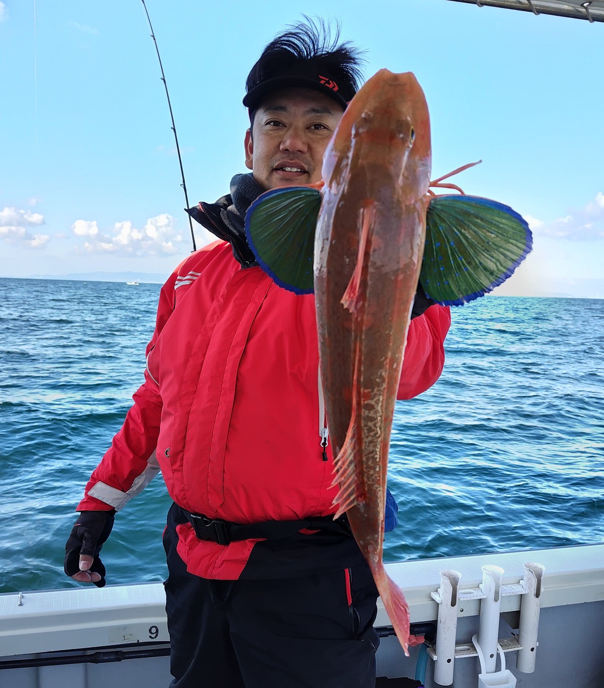 海が荒れたり船検が有ったりで久々となりましたが、タイラバで出船しました! 朝一お一人様にアタリが集中でリリース含みの4連発+デカガシラを2匹! 中盤3枚とエソ・トラギスを追加^^; 終盤2枚と50cmのデカホウボウを追加して、トップ7枚で終了! 五目達成(^_^;) 今日もリリースサイズが多かったですが、本命の1枚は自己対記録となる78cmでした。 おめでとうございました(^^) 本日は長時間、本当にお疲れ様でした。 |