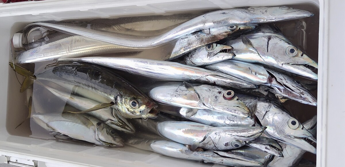 今日はタチウオ+鬼アジ狙いでしました(^o^) 前半はタチウオ。 一流し目で全員安打! おめでとうございました(^o^) サイズは今一伸びませんでしたが、数は十分釣れて良かったです。 後半は鬼アジ狙い。 んっ(・・;) ポイント上にイルカの群れが…。 反応が薄くかなり広範囲を探して、ラストに少しだけでしたが釣れて良かったです(T_T) 本日は長時間、本当にお疲れ様でした。 ※全般バタバタで、写真少なくてすみません。 |