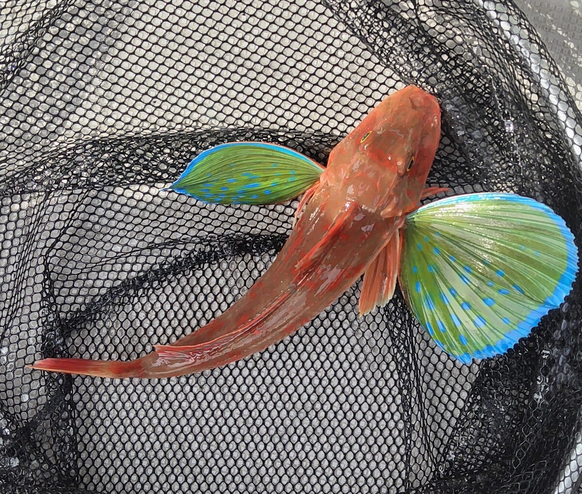 今日はロング便で出船しました(^o^) ポイントに入って直ぐにナイスサイズを6連発! 「今日は爆釣の予感が…」 と思ったのですが、中盤見事にチャリコ祭り(-_-;) しかしお一人様が後半に凄い追い上げで、トップ5枚が2名様、全体で23枚(リリース含む)、最大ロクマルでした! その他にも狙い撃ちでアコウ・ホウボウとナイスサイズのワニゴチ、トラギス(リリース)含みで五目も達成! タイラバデビューのお客様一名様もラストまで頑張って頂きましたが、無念のボーズ(T_T) 次回に期待ですね! 本日は長時間の釣行、本当にお疲れ様でした。 ※沢山のリリース、いつもありがとうございます。 ※枠の関係で全ての写真を掲載出来ず申し訳ございません。 明日は強風予報の為休船です。 |