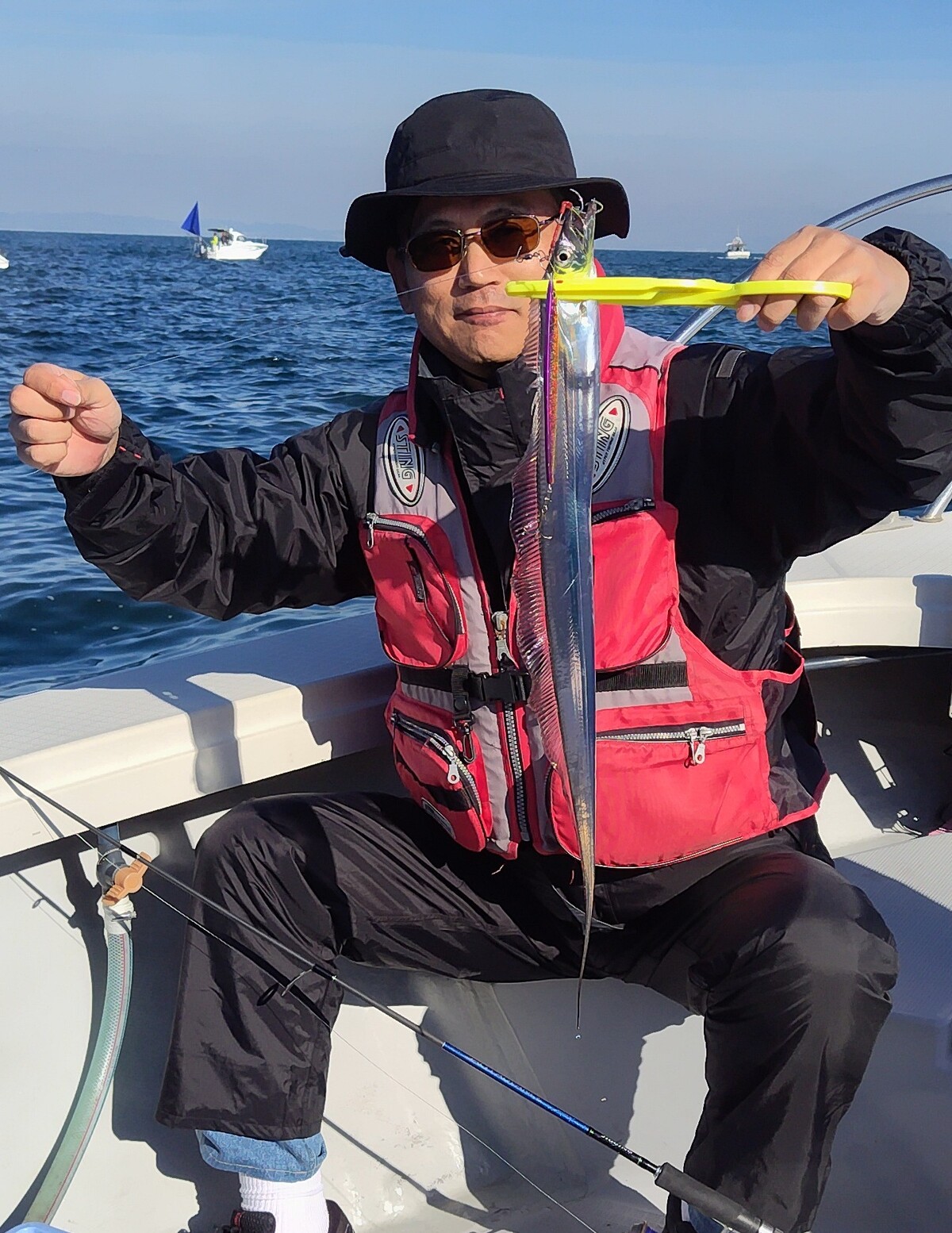今日はタチウオ狙いで出船しました(^o^) ※2回目のチャーター、ありがとうございました。 ほとんどの方が初心者様でしたが、幹事様のフォローのお陰で全員安打! 幹事様、色々お手伝い頂き本当にありがとうございました。 m(_ _)m 朝一サワラキャッチに始まりマサバからオマツリ連発、女性(二名)のお客様もジグからテンヤに替えてから連発と、あっと言う間の楽しい一日でした。 段々と慣れて来た時に納竿となり残念でしたが、何とかお土産確保出来て良かったですね。 本日は長時間の釣行、本当にお疲れ様でした。 |